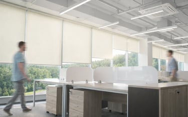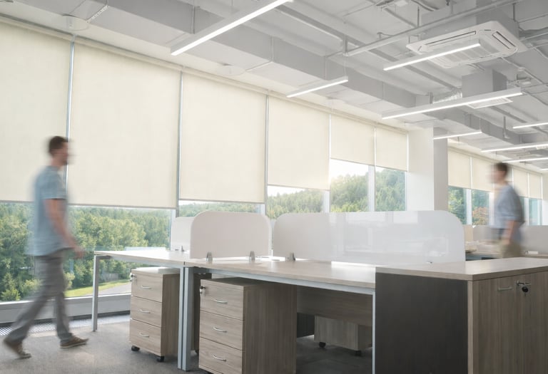 Megerősített szerkezetüknek köszönhetően ezek az anyagok tökéletesen egyenes éleket, egyenletes feszítést és hosszú távú alaktartást biztosítanak — még nagy felületű ablakok esetén is. Az eredmény letisztult építészeti megjelenés, egyenletes fényáteresztés és megbízható működés nagy igénybevételű vállalati környezetben.